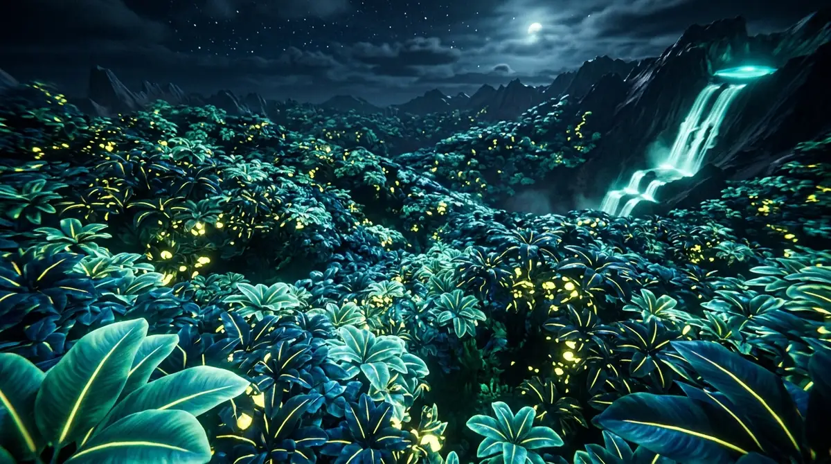 Banana Bounce is set in the Aerosian Canopy, a mythical, gravity-defying tropical utopia floating high above the clouds. Here, kinetic energy powers everything, and bioluminescent flora reacts to every bounce and leap.